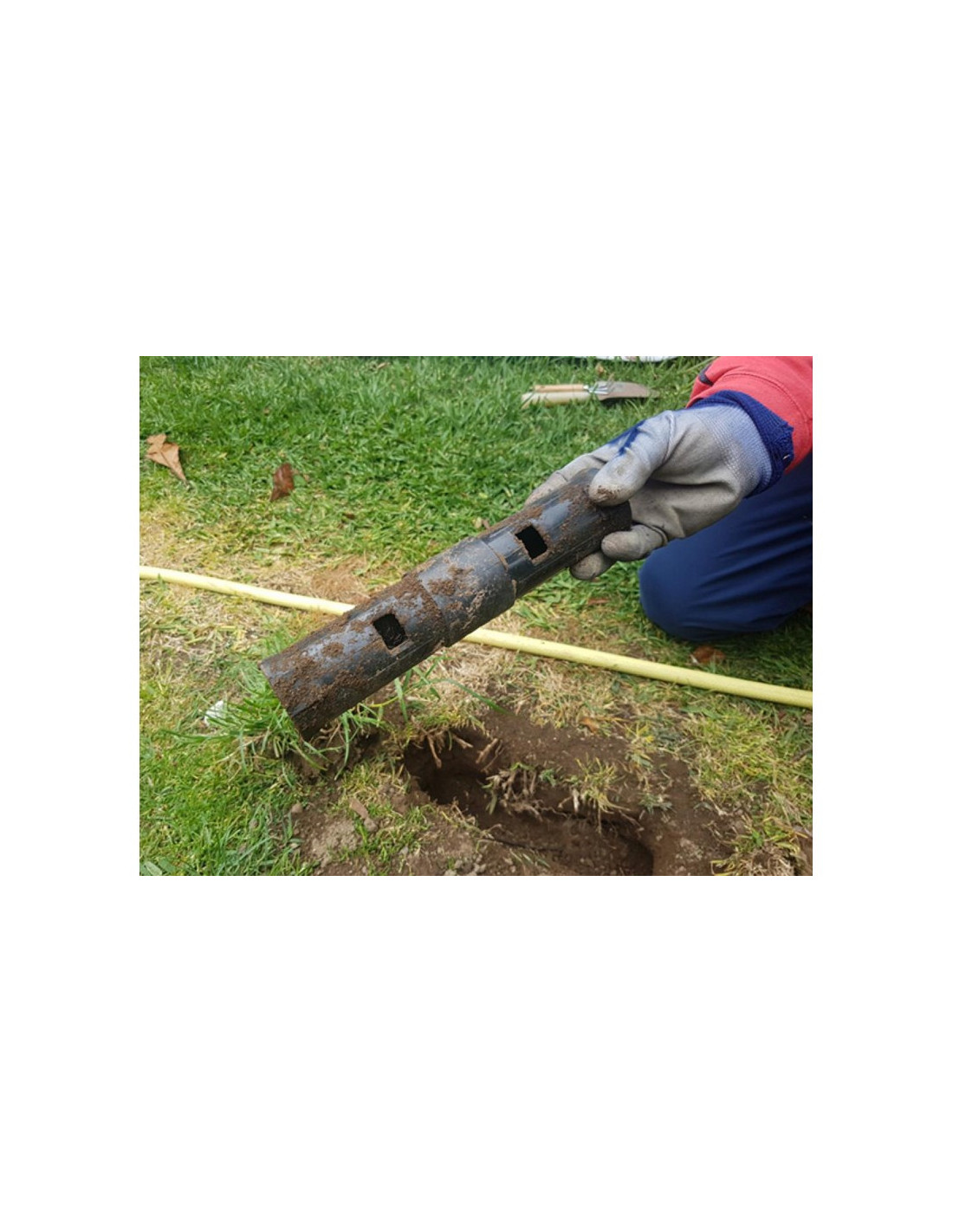 Localice el montón de tierra más reciente y abra la galería con una pala en un ancho de 25 cm, despeje las aberturas y coloque la trampa en posición horizontal con la ranura hacia arriba. Cubra la trampa con tierra, ladrillos, piedras…