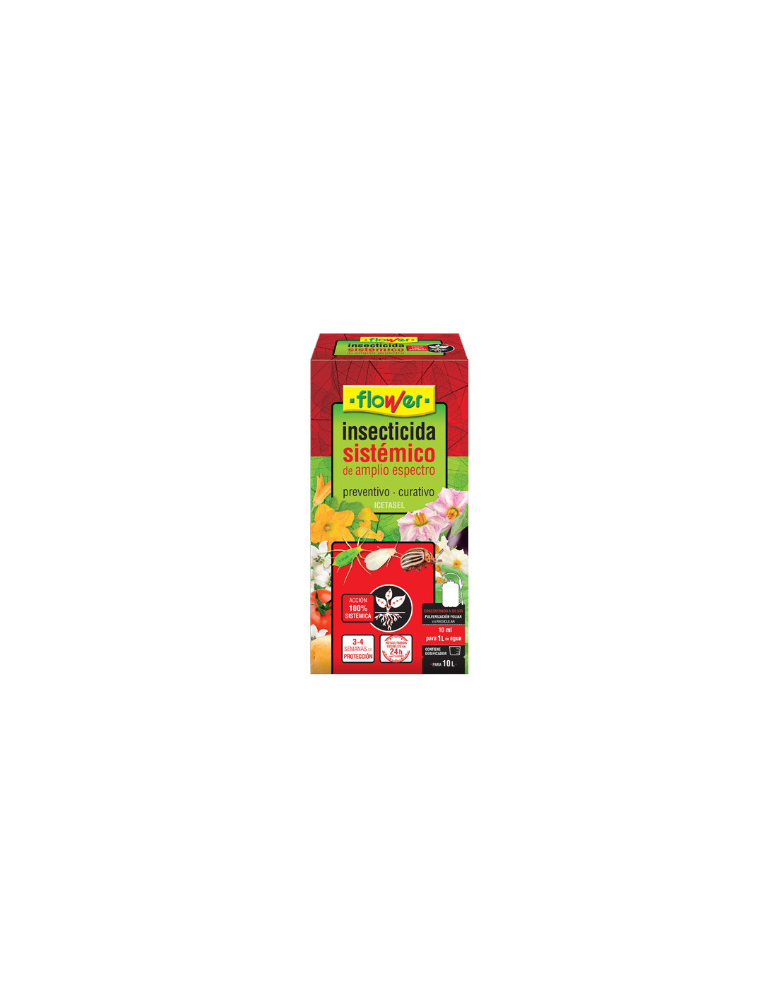 Insecticida sistémico de amplio espectro de 100ml es un producto sistémico que actúa por sistema provocando un efecto preventivo y curativo, lo que permite eliminar numerosos insectos que afectan a las plantas. Tiene un gran efecto de choque y efecto preventivo durante 3 semanas después de su primera aplicación.
