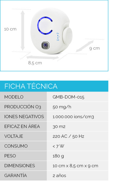 El O3 Aire Compact se trata de un equipo muy efectivo para habitaciones pequeñas, compacto y fácil de utilizar, solo debemos enchufarlo a una toma de corriente de 220 V y podemos empezar a disfrutar las ventajas del ozono.