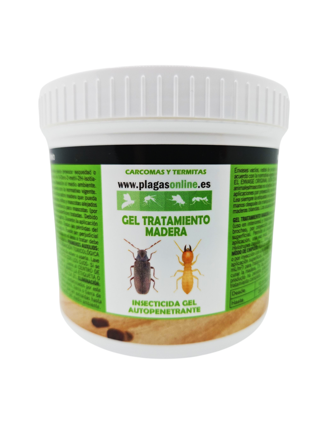 Insecticida contra la Carcoma y demás insectos comedores de madera (xilofagos) en forma de gel de 400ml. Es un gel de absorción profunda para el tratamiento de la madera.