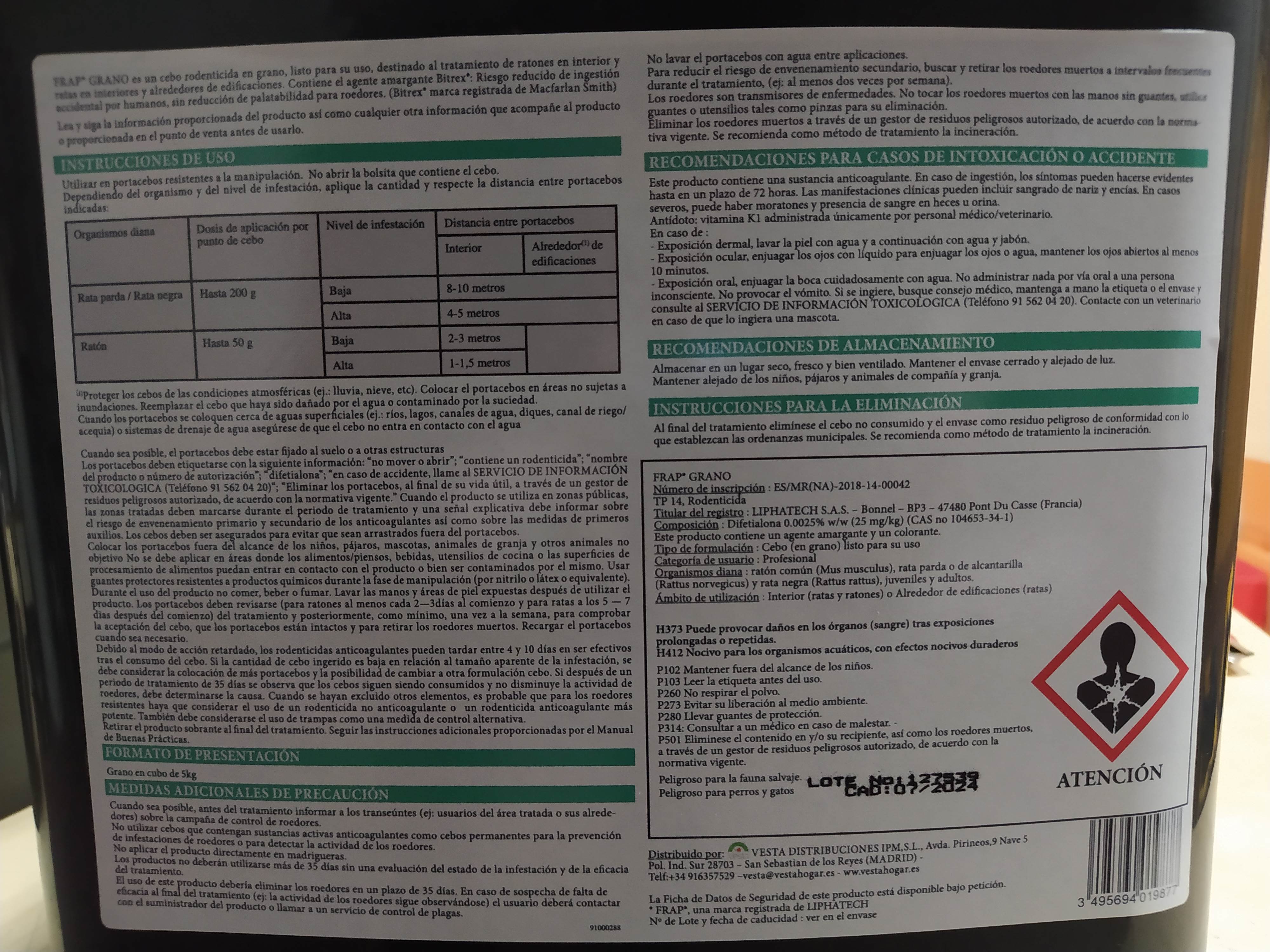 Número de Inscripción FRAP GRANO: ES/MR(NA)-2018-14-00042 TP 14, Rodenticida.